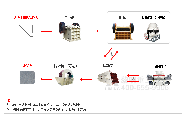 制砂生產線--我公司生產的全套制砂生產線設備,為您提供全面的技術支持,制砂生產線通常由振動給料機、顎式破碎機、直通沖擊式破碎機(制砂機)、振動篩、洗砂機、膠帶輸送機、集中電控等設備組成;設計產量一般為50-500噸/小時。我公司歷經數年的開發研究,將具有國際先進水準的直通沖擊式破碎機(制砂機)與公司其他系列產品相配套,設計出的全套制砂生產線,處于行業實踐地位。全套制砂生產線設備可用于硬質石灰石、花崗石、玄武巖、河卵石、石屑、各種巖石和礦石尾砂的工制砂,適用于水電、建材、高速公路、城市建設等行業的應用。黎明重工根據不同的工藝要求,對各種型號的設備進行組合,滿足客戶的不同工藝要求。